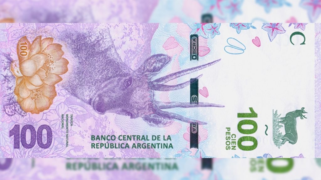 La serie de billetes está compuesta por seis animales: el hornero (1.000 pesos), el yaguareté (500), la ballena franca austral (200), el cóndor andino (50), el guanaco (20) y ahora la taruca (100).